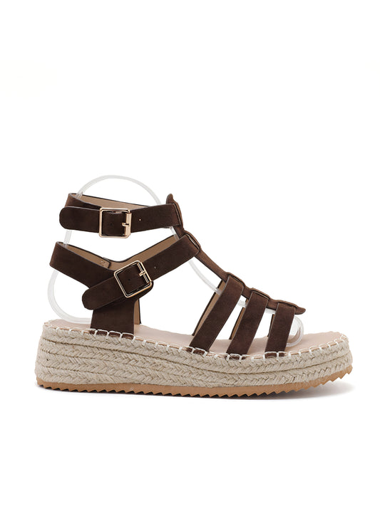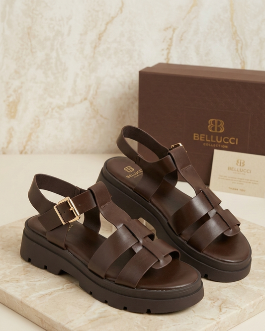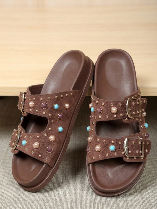 Sandales Plates à Doubles Brides Ornées – Chocolat