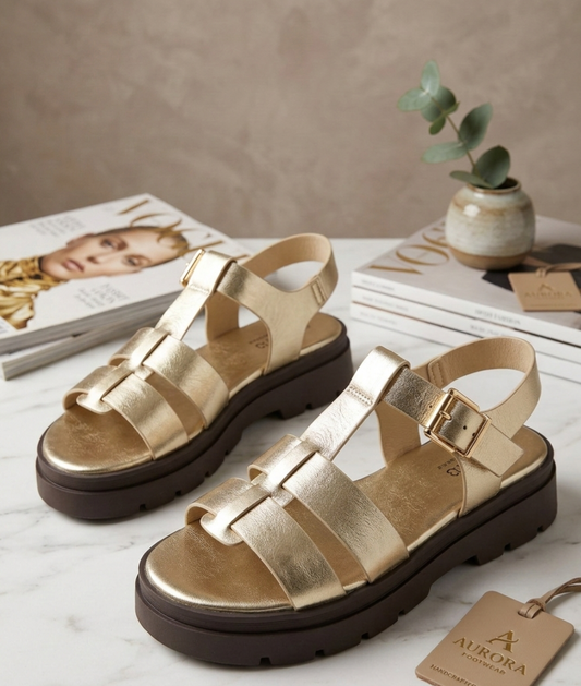 Sandales à plateforme femme type spartiate DENIA GOLD
