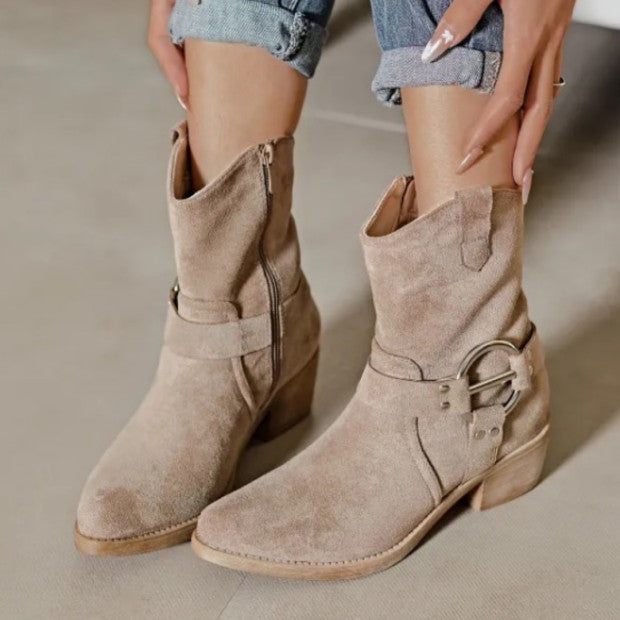 Cette bottine santiags à talon est à la fois élégante et audacieuse, de couleur taupe, elle affiche un design western revisité avec une touche moderne, offrant ainsi un look raffiné tout en conservant l'esprit de la tradition santiag.